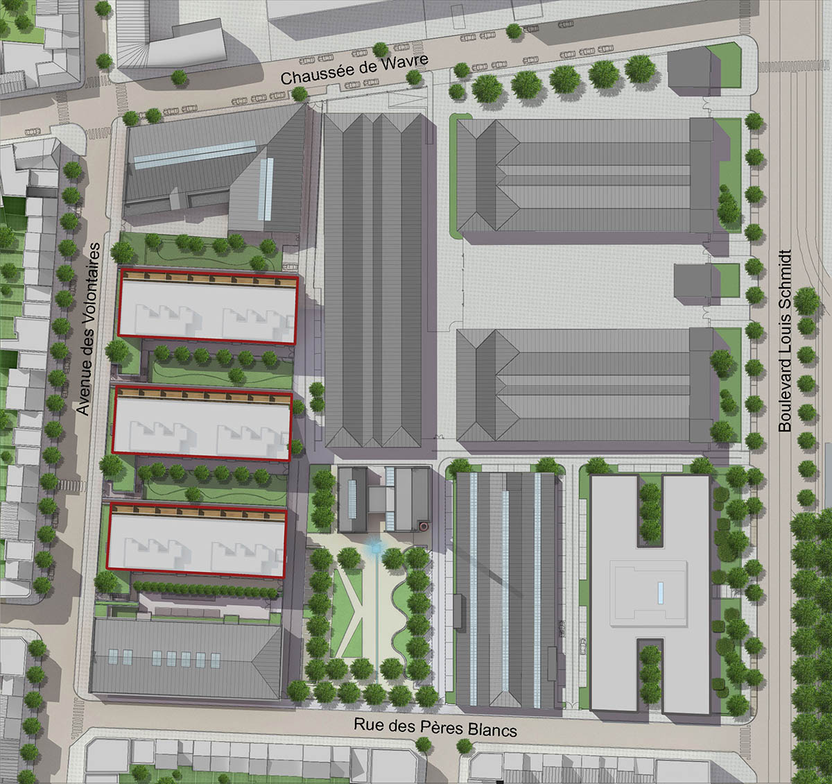 Le programme de réaffectation de l’ancien site militaire de l’Arsenal du Charroi, situé en zone urbaine, vise à réaliser des espaces dédiés aux logements, aux bureaux, aux activités productives, au commerce et aux espaces verts.
