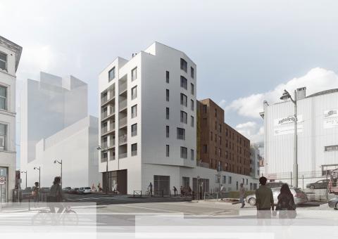 Le projet EKLA complète un îlot en cours de réhabilitation et se greffe sur un axe majeur du maillage bruxellois : la chaussée de Ninove.