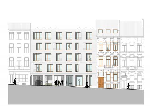 Le rez-de-chaussée est libéré au profit d'un large porche qui accueille l'ensemble des accès et crée un appel de lumière depuis la rue vers l'intérieur de l'îlot. Cette porosité de la rue vers le Parc Coenen en intérieur d’ilôt offre une respiration urbaine et permet des connexions visuelles entre le haut et le bas du terrain.