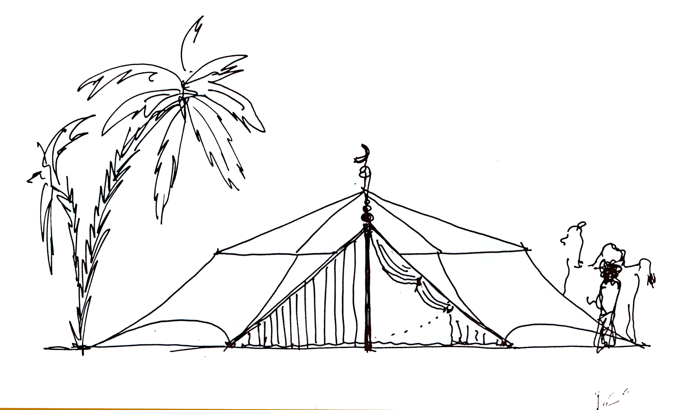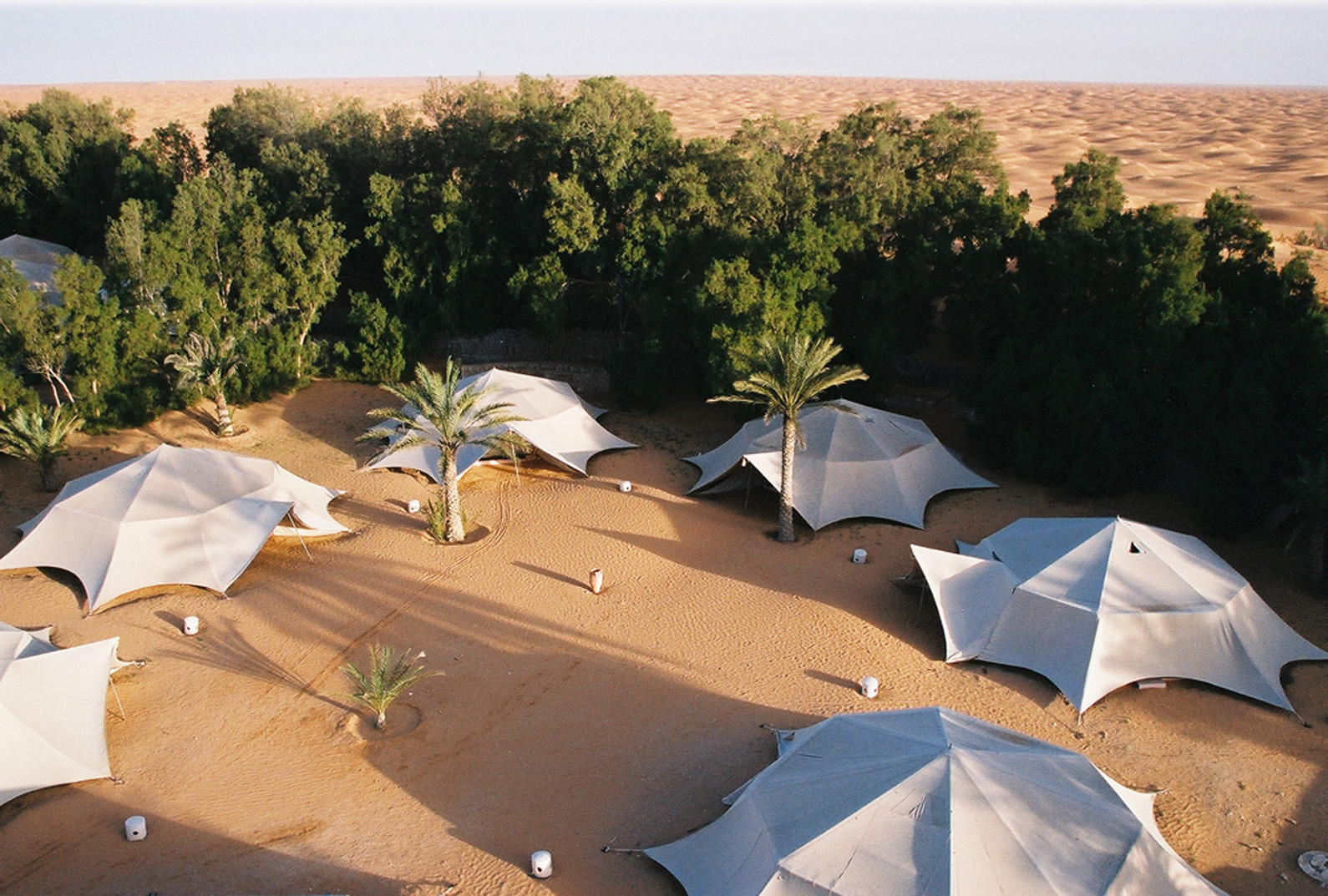 ATLANTE y a conçu un relais de 60 grandes tentes en guise de chambres ; celles-ci réalisées en tissage de lin ont été dessinées sur base de la silhouette de la tente bédouine. Toute la partie collective (accueil, restaurant, piscine) a été réalisée en constructions de pierres sèches et de murs enduits, laissant apparaître la texture des éléments les composants.