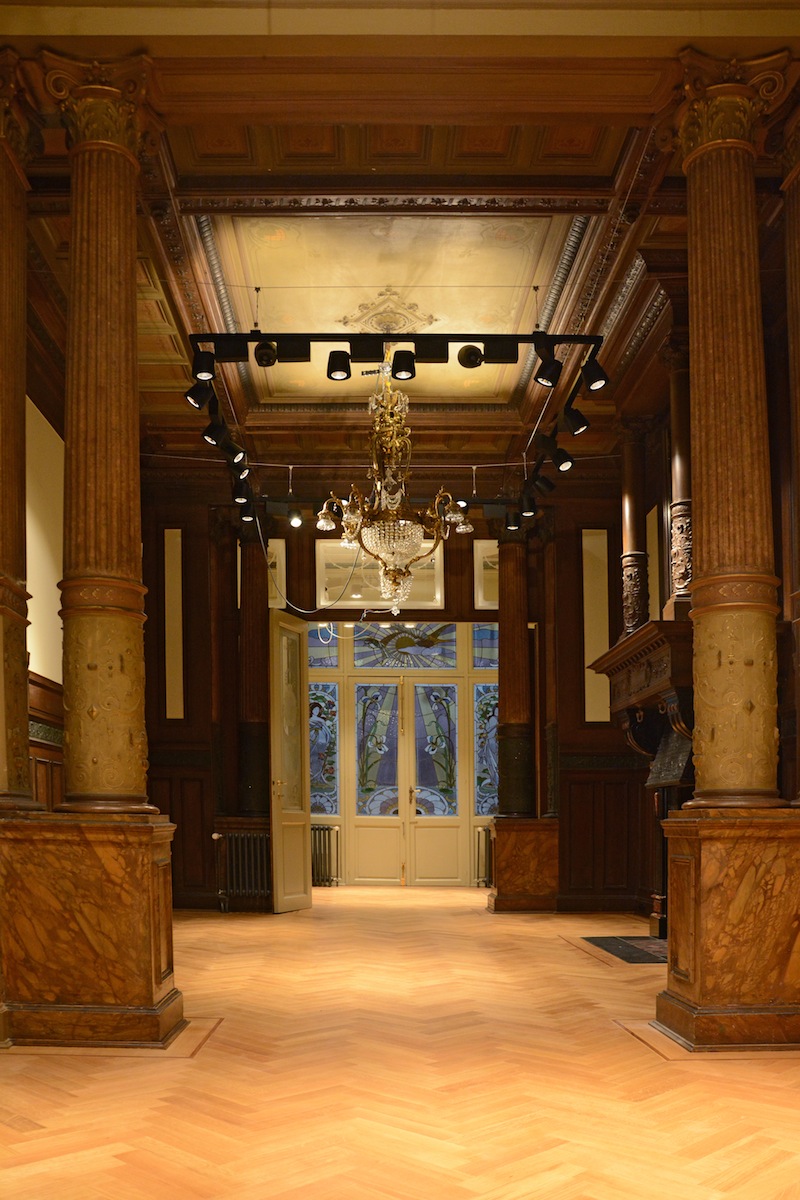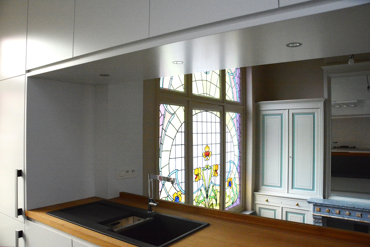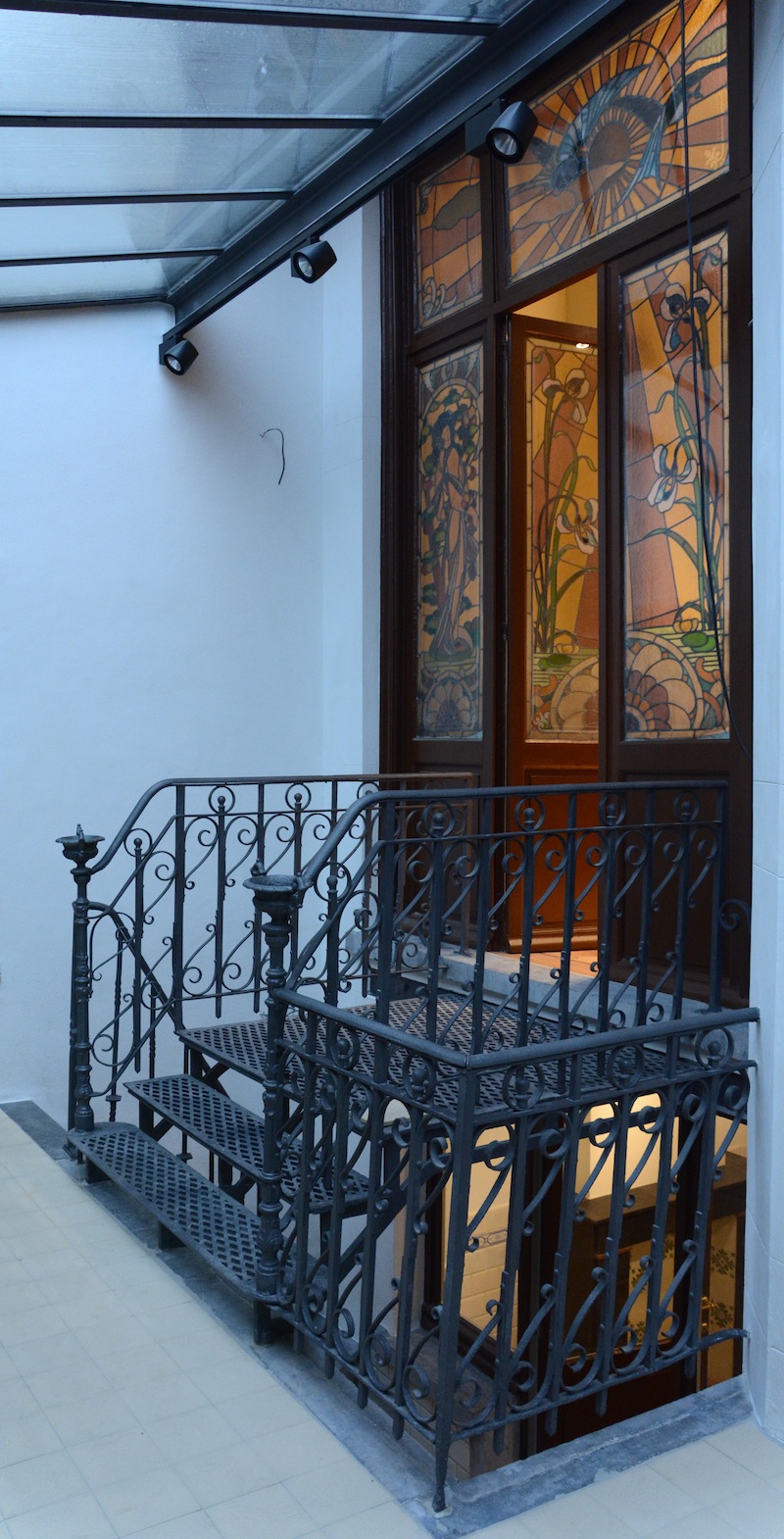 Quelques interventions sont spécifiques à la galerie comme la couverture de la cour-jardin par une verrière contemporaine qui sert à protéger les éléments décoratifs de la cour : rocaille, ferronneries, carrelages, ... et à lier les pièces de la cave et du rez-de-chaussée sous forme d’un parcourt continu.