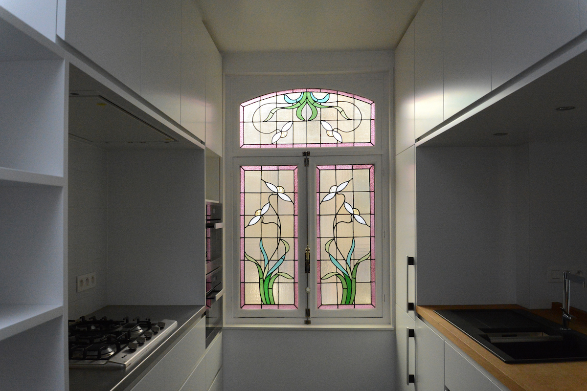 D’autres interventions sont liées à l’aménagement du logement (cuisine, salle de bain) et tranchent avec le style de la maison, nouveau et ancien cohabitent sans ambiguïté.