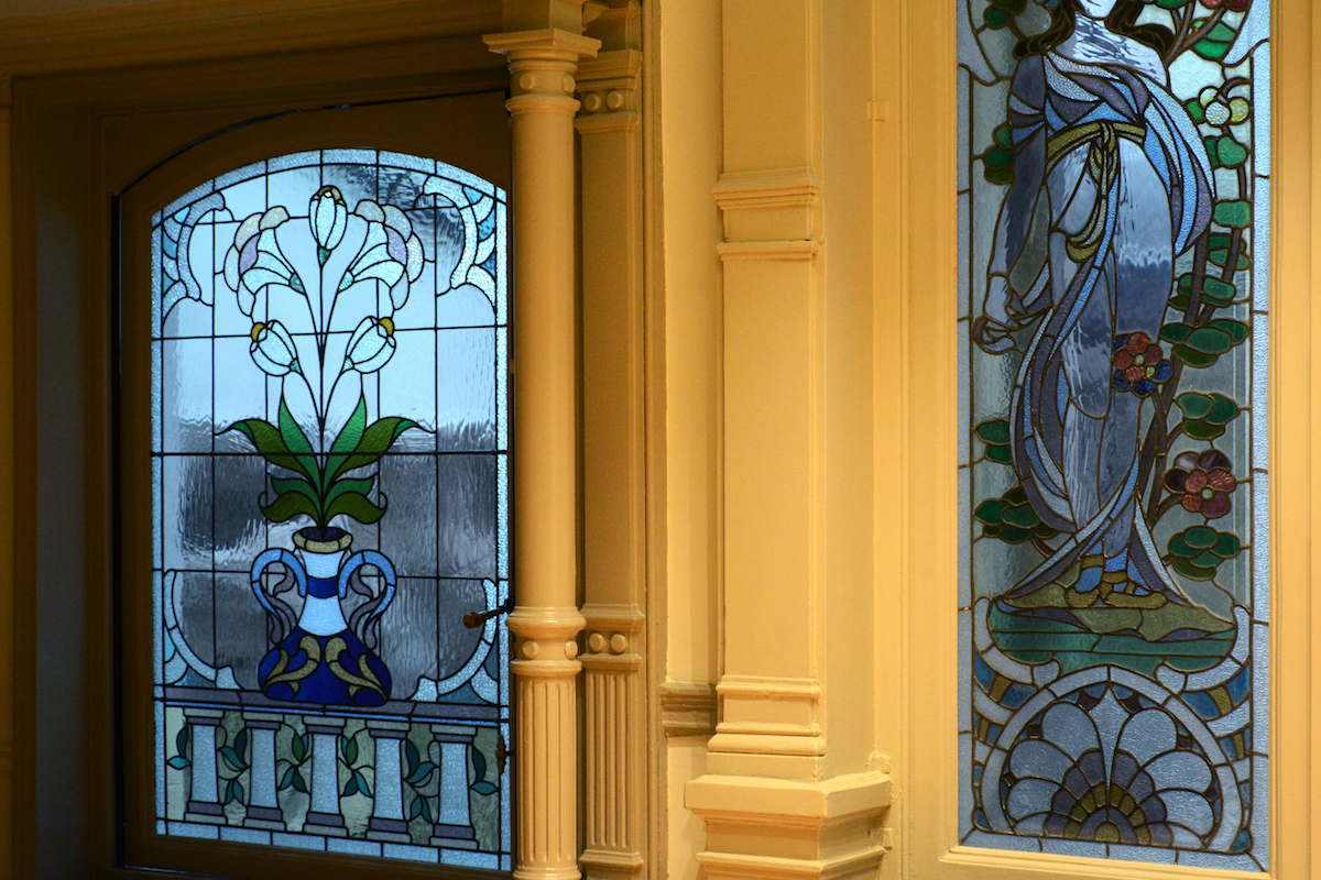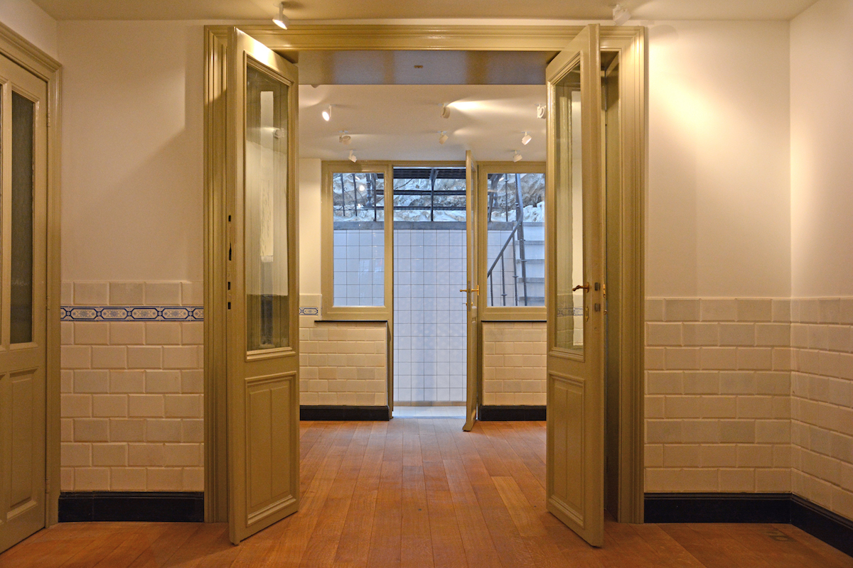 Le rez-de chaussée et le sous-sol sont utilisés pour la galerie d’art. Le premier étage possède un bureau lié à la galerie et les étages supérieurs occupent la fonction d’origine en logement.
