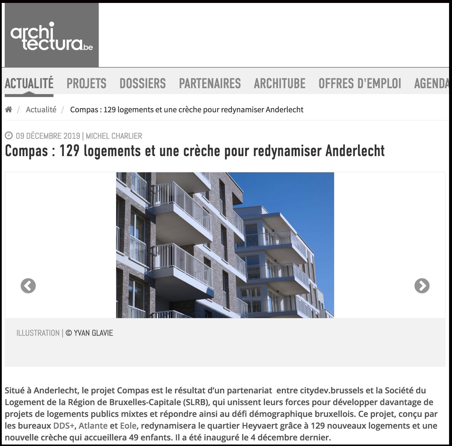 En décembre 2015, le projet "Compas", conçu par Atlante en collaboration avec DDS & Partners et Eole paysagistes pour Immo BAM, a été sélectionné dans le cadre d’un concours organisé par Citydev.Brussels pour la rénovation d’un ancien site industriel à proximité du canal Bruxelles-Charleroi à Anderlecht. La programmation comprend : un ensemble de 129 logements passifs à usage locatifs (SLRB) et acquisitifs (Citydev), 1 crèche, des parkings ainsi que des aménagements urbains et paysagers.