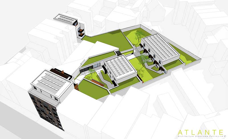 En février 2012, Atlante est désigné comme lauréat d’un concours organisé par URBANI. Le programme réclame la construction d’un ensemble de bâtiments passifs, abritant une trentaine de logements destinés à un usage locatif.