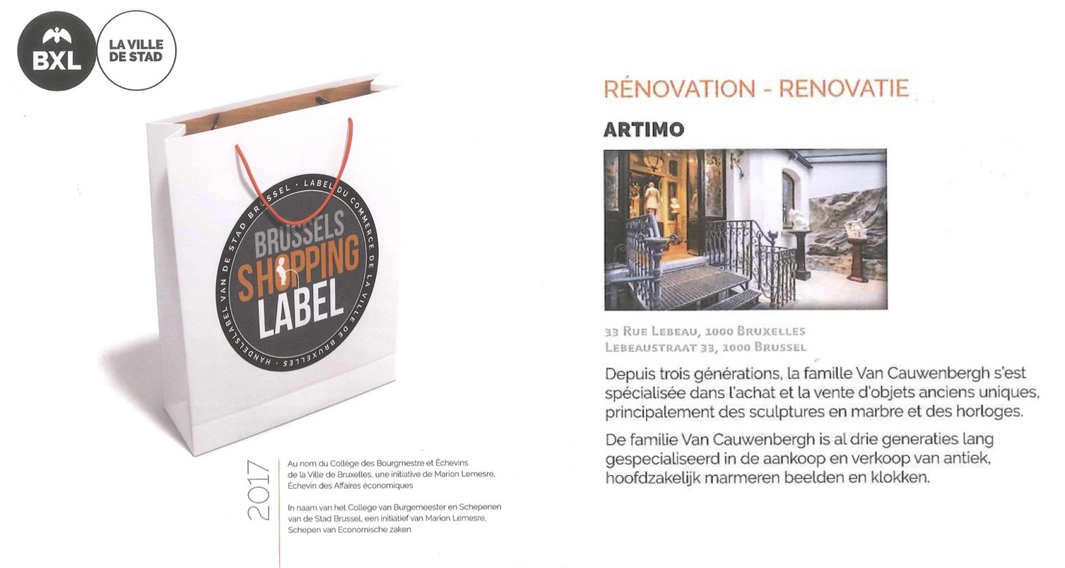 Le jeudi 9 novembre 2017, la galerie ARTIMO a reçu le Label du Commerce de la Ville de Bruxelles dans la catégorie Rénovation.