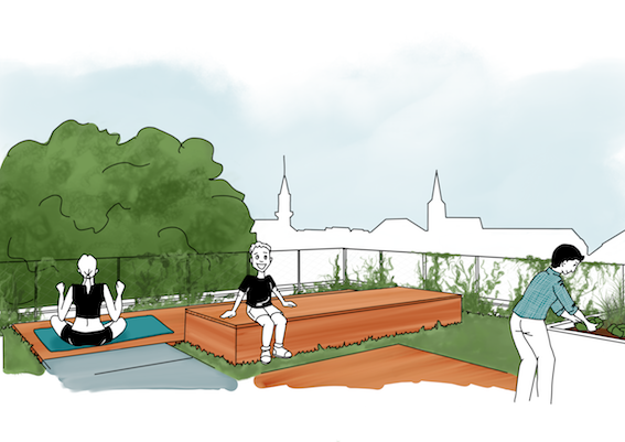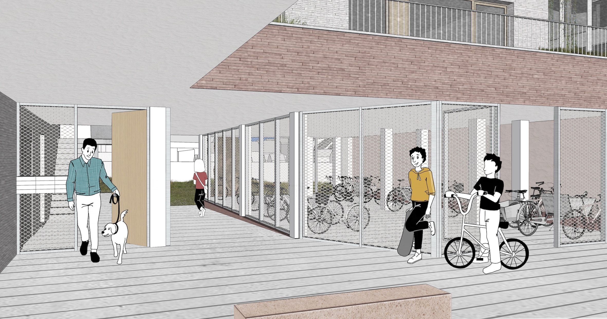 1980m2 pour les logements, 678m2 pour l’équipement public, 1009m2 pour les abords dont 104 m2 pour le parking vélo