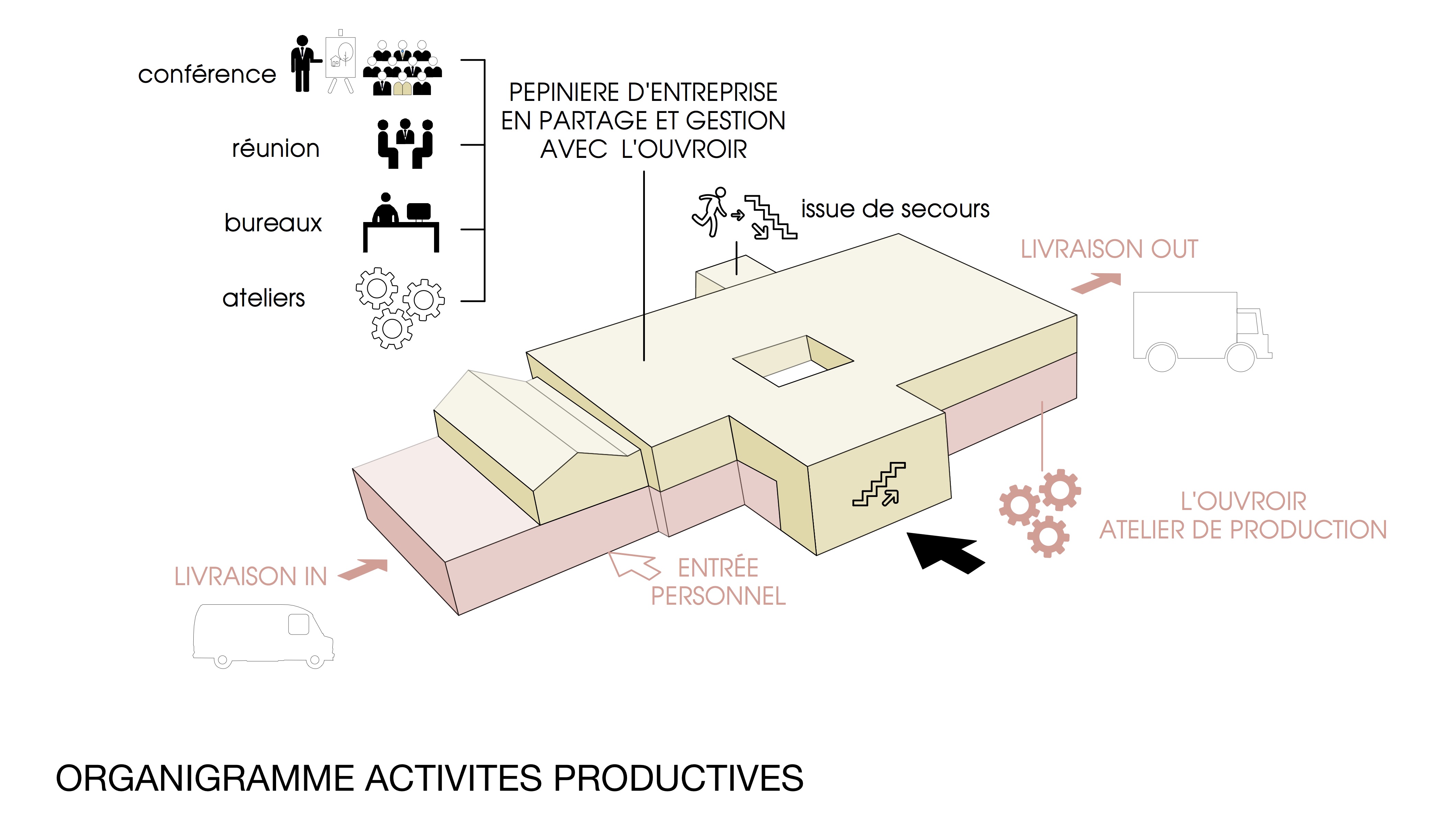 étude de faisabilité sur le site des quincailleries Vervloet  (création de 34 appartements et rénovation // réaménagement des quincailleries en ateliers de production pour l’Ouvroir et en pépinière d’entreprise